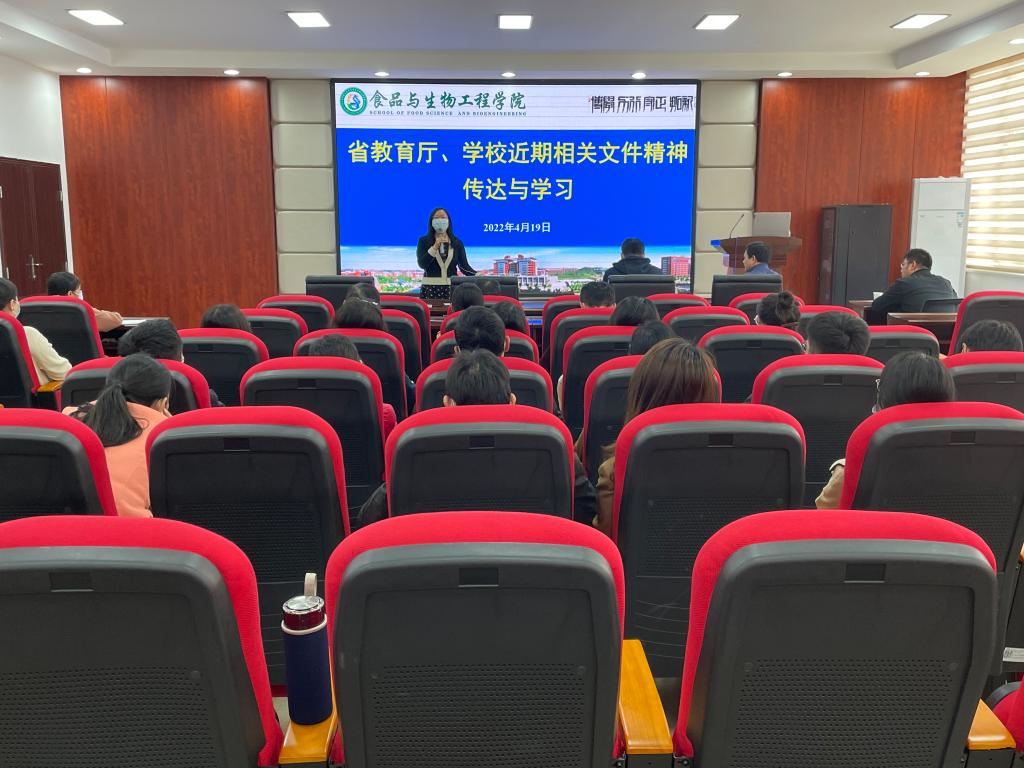 食品学院组织全院教职工集中学习湖南省教育厅和学校近期相关文件精神