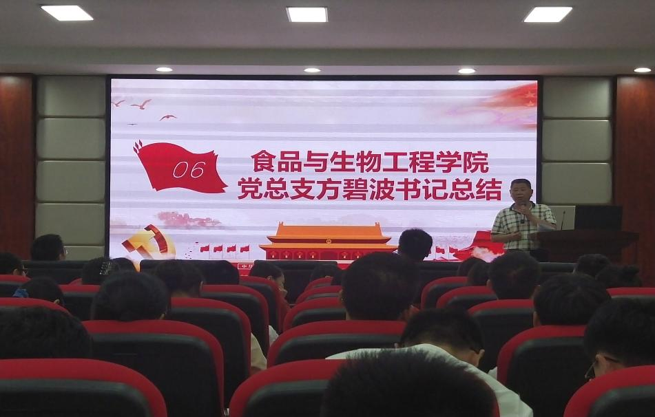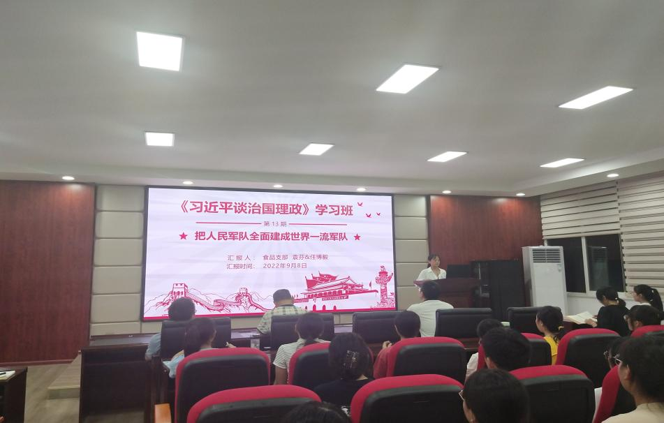 2022年9月8日,LETOU体育平台食品与生物工程学院本科生食品党支部在工科三号楼A320举办《习近平谈治国理政》读书班第七次读书分享会。食品学院党总支书记王建辉、党总支副书记练黎旋、专职组织员方碧波、学工办老师胡佳佳等师生近100余人参加此次活动。