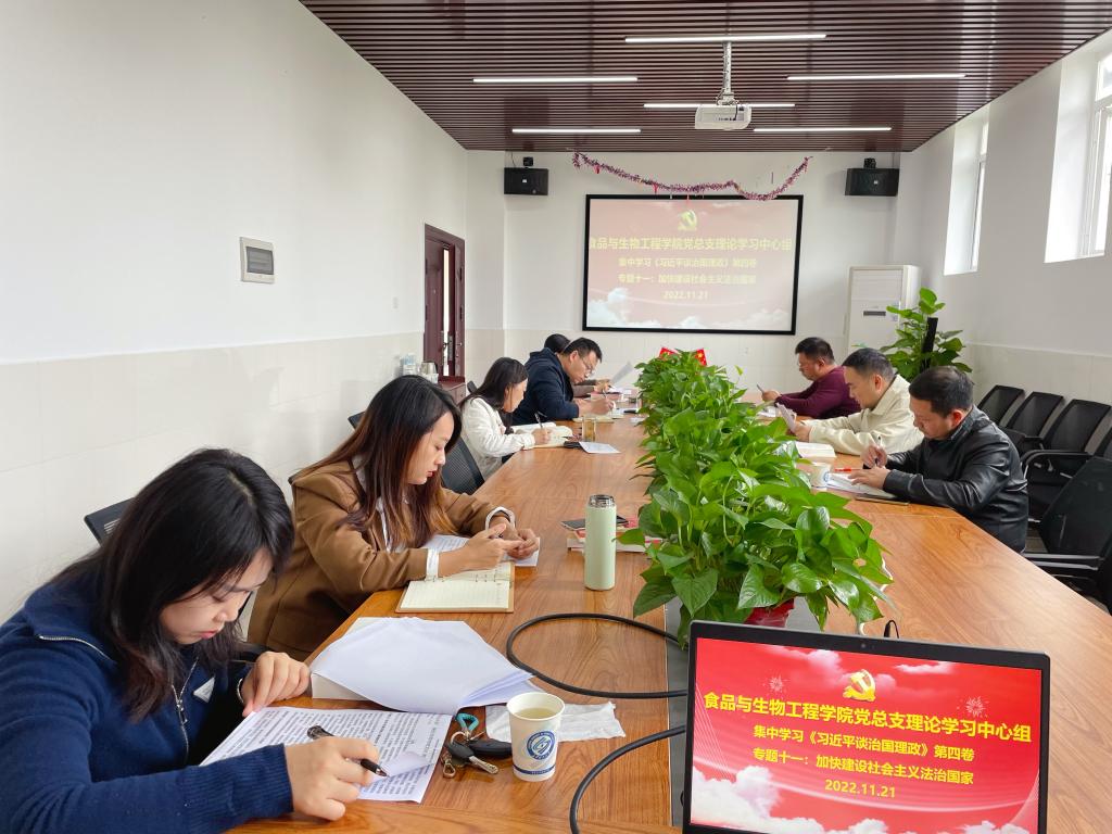 11月21日下午,学院党总支理论学习中心组在工三A349会议室第六次集中学习《习近平谈治国理政》第四卷,会议由党总支书记王建辉主持,学院领导班子成员、各支部书记参加。