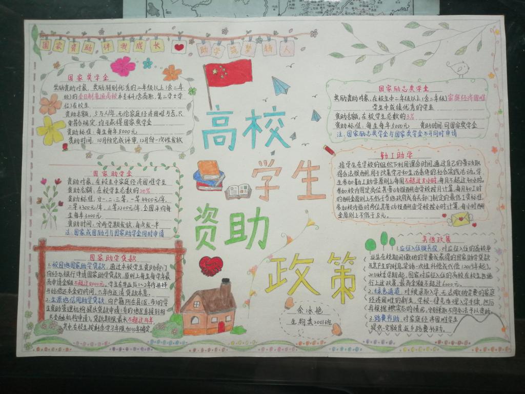在做好疫情防控的前提下,韦兆凯等多位学生联系到当地社区居委会,去到家庭经济困难户中进行实地调查;余冰艳等学生根据国家资助政策制作问卷调查,通过对问卷调查结果的分析了解不同人群对于学生资助政策的了解程度和看法;李勋等学生选择一些经典动画影视作品的片段,将其与国家资助政策相结合创作台词,给选定的影视片段配音,用轻松有趣的方式宣传国家的资助政策;谢新阳等学生以国家资助政策为主题制作手抄报、海报,深入浅出地介绍了国家资助政策。