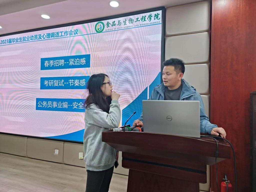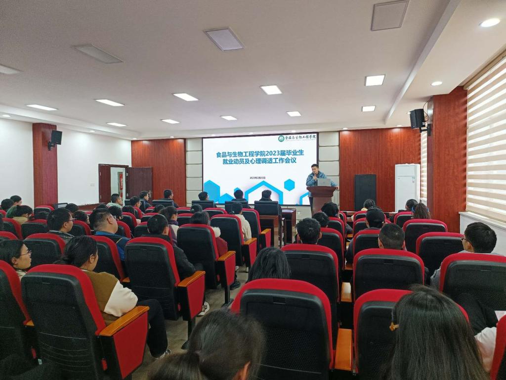 为进一步做好学院2023届毕业生就业工作,2月22日下午,食品学院于工三A320会议室召开2023届毕业生就业动员及心理调适工作会议,本次会议由学院就业辅导员兰贵辉主持,2023届毕业研究生、本科生共100余人参加。
