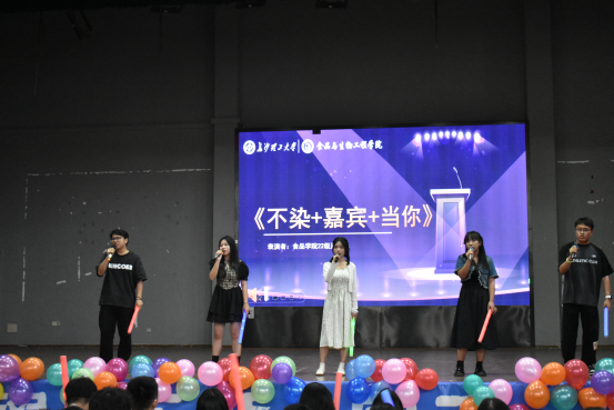诗朗诵《秉路石之勢,创繁荣之世》由22级朗诵队的郭蓉等7位同学共同呈现,一行行振聋发聩的诗句,带领同学们走进那段激情燃烧的岁月,聆听“不忘初心跟党走”的永恒誓言,呤诵出属于我们的盛世年华。生物类2207班带来的歌曲串烧用婉转清澈的歌声娓娓道来青涩懵懂的回忆和憧憬期待的未来。晚会最终在辅导员王凤和全体22级班长的歌曲《奔跑》中结束,歌声中透露着食品学子饱满的自信和对未来的无限希望,绽放着青春的活力和无限风采。