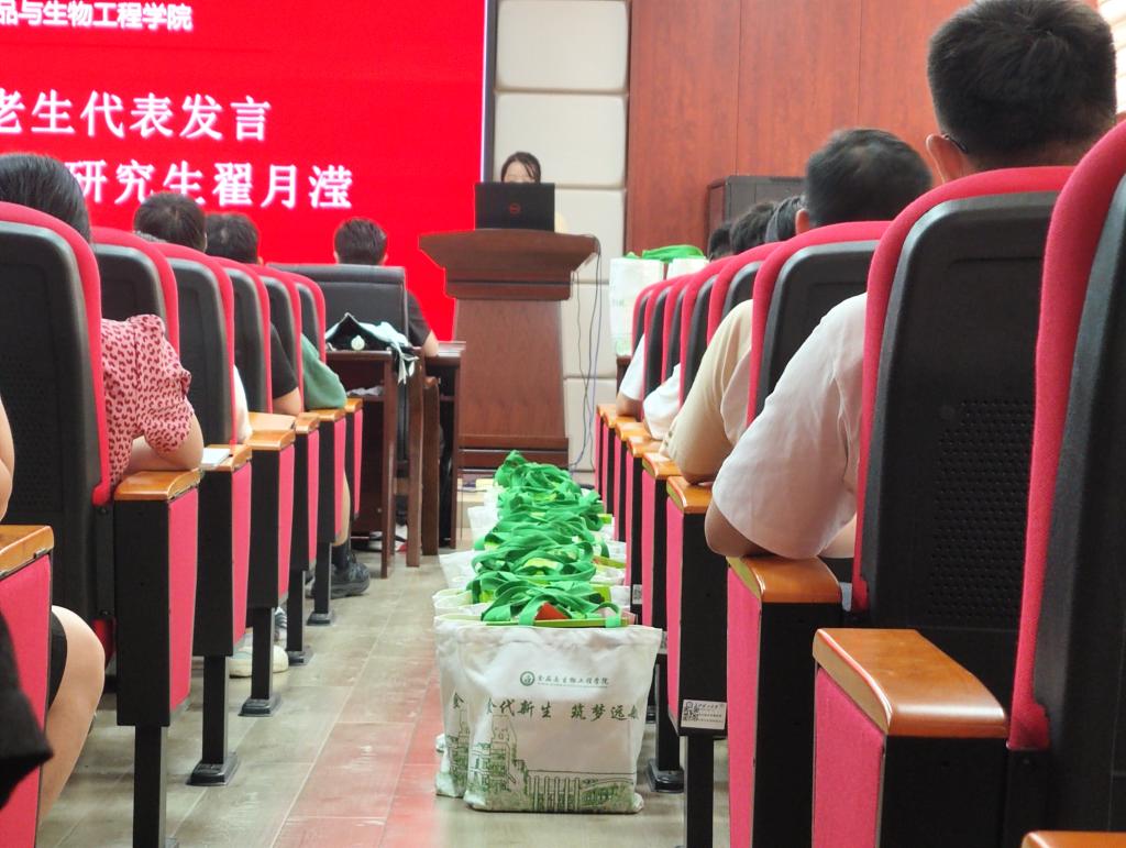 会议最后,学院给65位研究生新生赠送了开学大礼包。印有“食代先锋、新生力量”的学院文化衫,盐津铺子蒟蒻果冻礼盒,邬辣妈响脆萝卜礼盒,麻辣王子,劲仔爆汁鹌鹑蛋……等丰富的零食礼盒都代表了学院对新生的满满爱意。