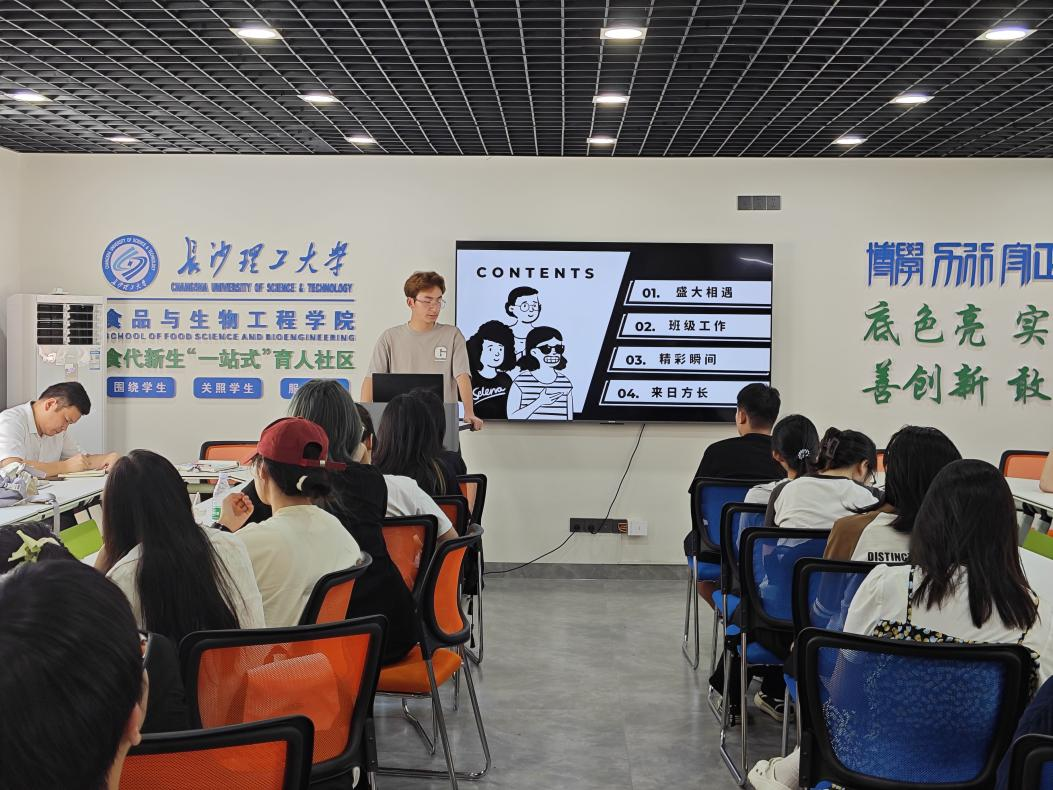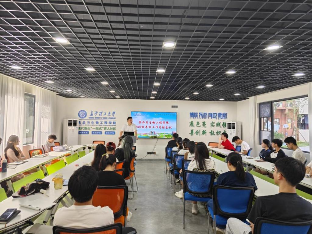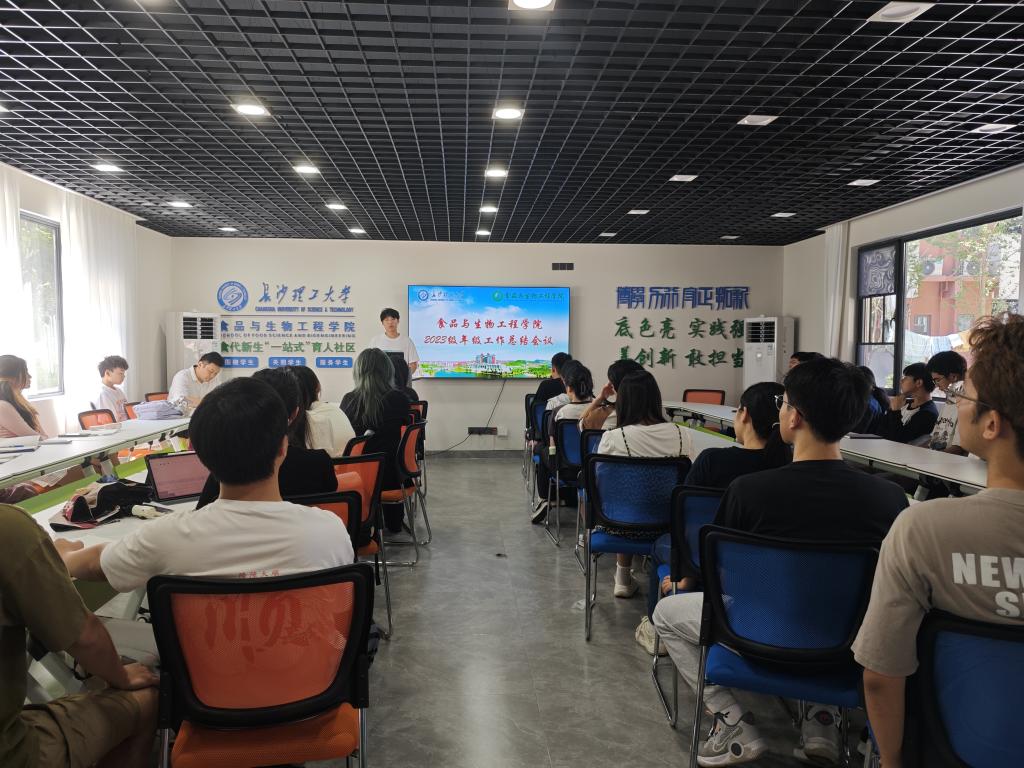 为进一步做好2023级年级管理工作,总结年级、班级工作中的收获与不足,提升新一届班委工作意识与能力,7月4日下午,食品学院于 学院食代新生“一站式”育人社区举办2023级年级工作总结大会。会议由2023级年级组长朱涛主持,年级辅导员兰贵辉及40余名班委代表参加此次会议。