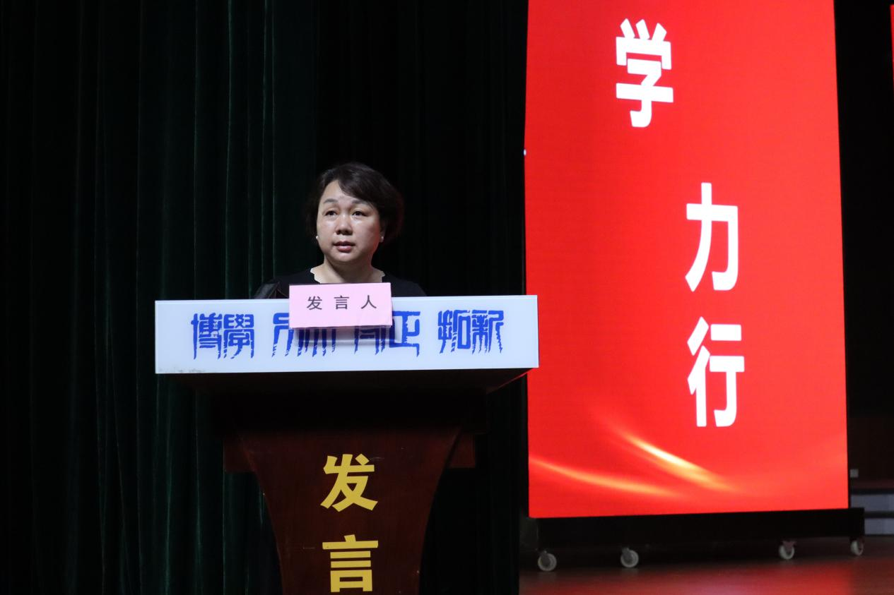 接着,教师代表易翠平教授上台发言。她以亲切的话语和生动的实例,向新生们分享了大学学习的方法和经验,期望同学们尽早确定人生目标,找准人生方向。