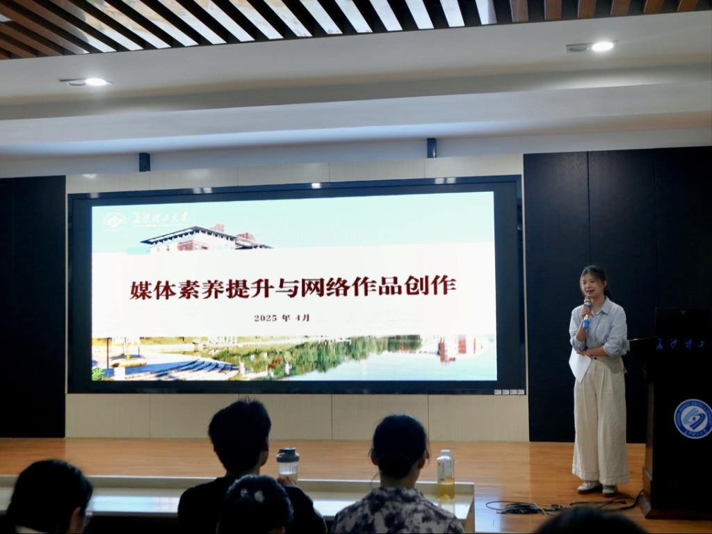 在实践技能培训环节,詹佳老师聚焦新媒体创作,详细讲解了新闻写作规范、摄影构图技巧及新媒体平台运营策略。“用好新媒体,做校园好网民”,她鼓励同学们积极参与网络创作,提升内容创新能力和实践技能,为校园文化建设贡献力量。