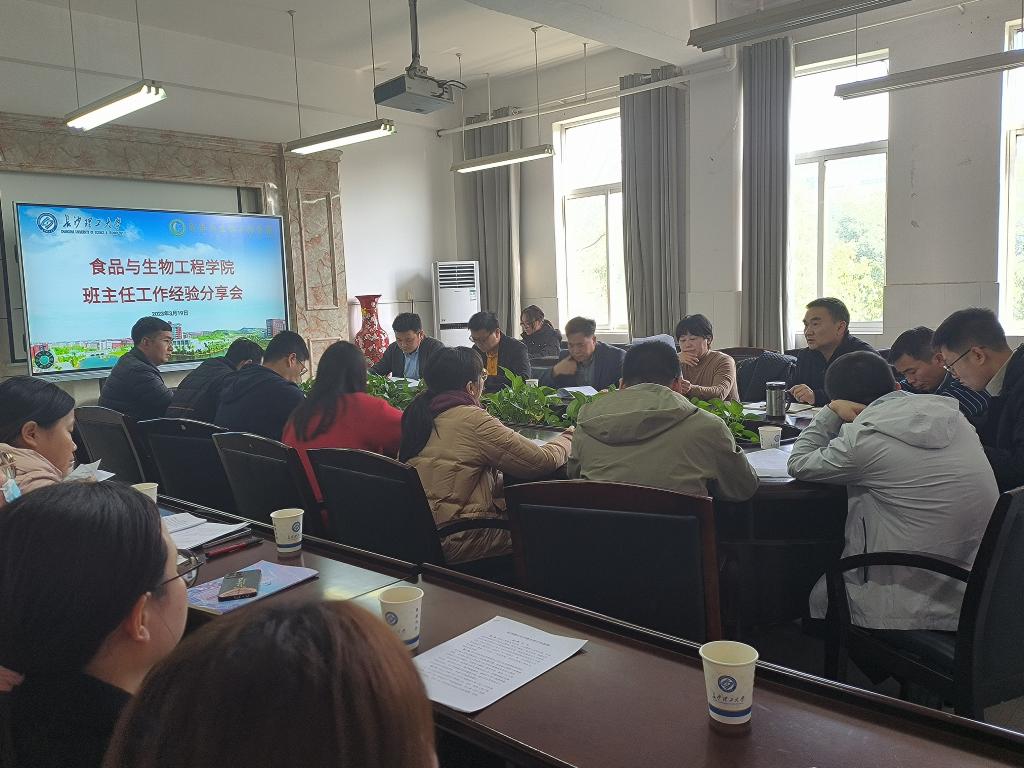 3月19日下午食品与生物工程学院在工三B318召开班主任经验交流会。学院党委书记高顺利、副书记练黎旋、校级优秀班主任代表舒孝顺、李向红、辅导员兰贵辉及学院全体青年班主任参与本次会议。
