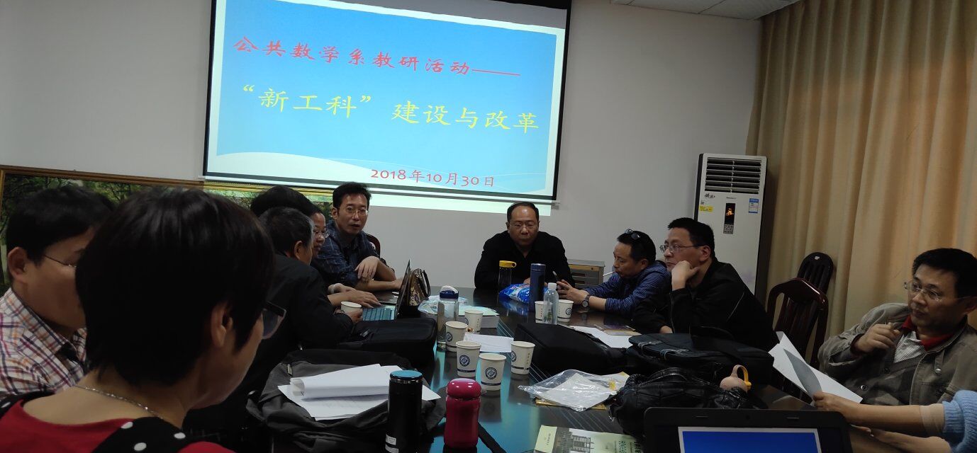 10月30日下午,数统学院公共数学系全体教师在理科楼A-503召开了“新工科”建设与改革的专题教研活动,会议由公共数学系主任谭艳祥主持,联系公共数学系的黄创霞院长参加了此次教研活动,并做了重要讲话。