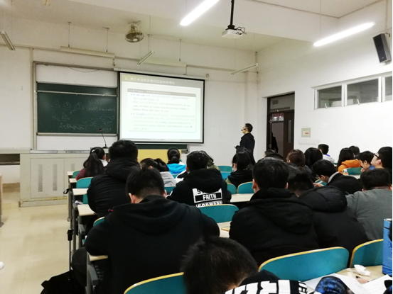 2018年11月20日下午,数学与统计学院数学与应用数学系张勇博士在理科楼A102给数学与应用数学专业学生做了题目为“椭圆曲线在平面几何中的应用”的学术报告。报告开始,张勇博士首先对自身学术研究领域进行了一个简单的介绍,随后提出问题:“直角三角形和长方形是否有相同的面积和周长?”,从而引出丢番图方程与椭圆曲线的理论。接着讨论了一系列平面几何中的问题,如两个等腰三角形是否有相同的面积和周长、两个Heron三角形是否有相同的面积和周长等。最后在已有研究的基础上提出几个相关问题并进行讨论,同时鼓励学生们要独立思考、自主研究。此次报告,张勇博士思路清晰、思维严谨,带动着在场学生们一起思考,现场氛围十分热烈,学生反响强烈,激发了学生们的求知欲望,也让学生们了解了更多的专业知识,达到了应有的目的。
