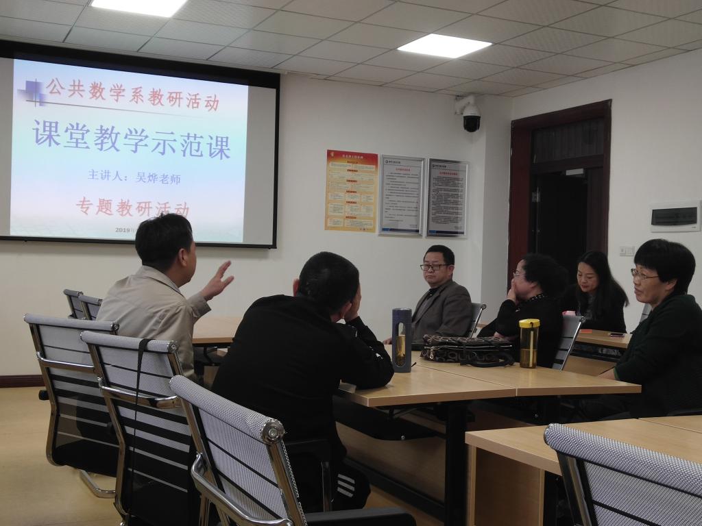 5月7日,数统学院公共数学系在理科楼A-311开展了“课堂教学示范课”的专题教研活动,课堂教学示范课由公共数学系吴烨老师主讲,教学副院长龚红仿参加了此次教研活动,联系公共数学系的黄创霞院长在教研活动中作了重要讲话。