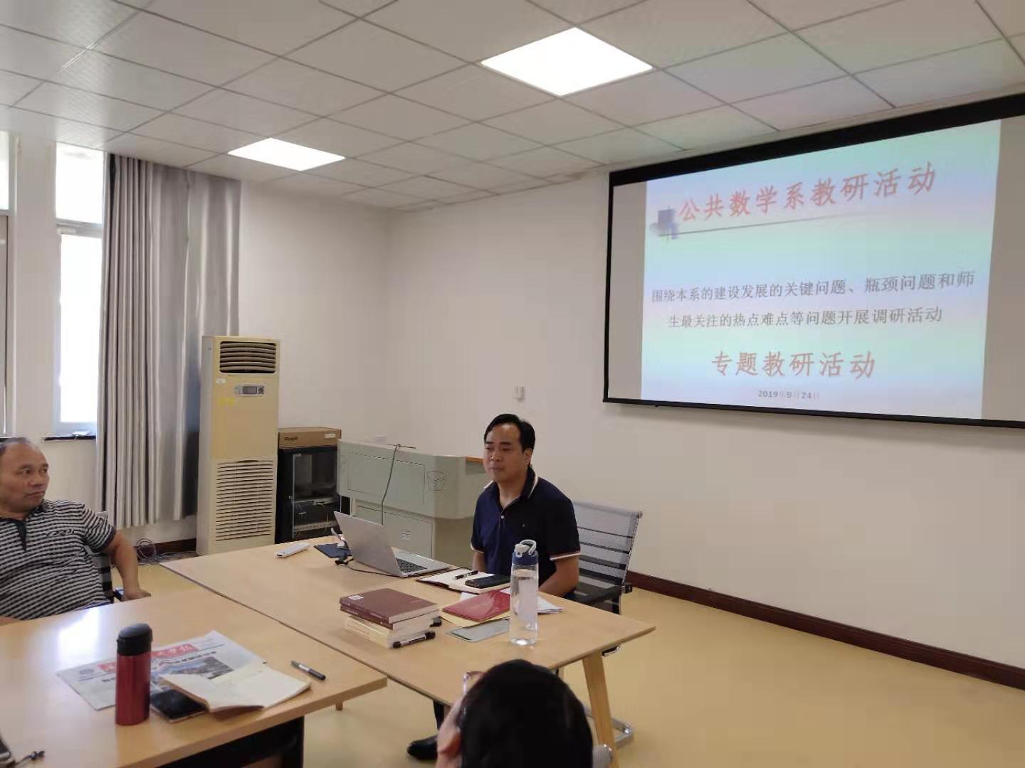 会上,老师们就公共数学系教师年龄结构问题、青年教师的发展问题、课程思政问题、如何打造“金课”等问题与黄院长进行了一一讨论和汇报。