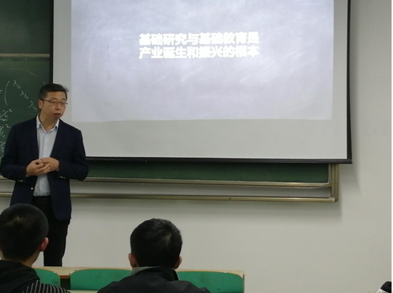 数统学院副院长仝青山主持报告会,并勉励同学们在大学期间学好“数学分析”、“高等代数”等专业基础课程,为将来从事高新技术行业打下坚实的基础。