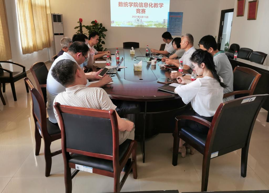 2021年6月15下午,数统学院在理科楼A410举办了信息化教学竞赛,王洁丹、伍海华和龚书晴3名教师参加了本次竞赛。竞赛由分管教学工作的副院长仝青山主持,学院教指委、督导组负责人和各系(中心)主任担任评委。