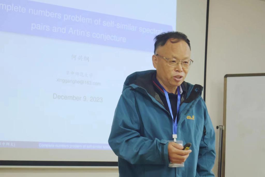 会议总共设11场主题报告,其中9场线下报告、2场线上报告。山东大学扈培础教授、南京大学廖良文教授、复旦大学王珺副教授、华中师范大学何兴纲教授、湖南师范大学黄曼子教授、中国科学院罗旭丹助理研究员、湖南第一师范学院王智刚教授、桂林理工大学刘志宏副教授和湖南科技大学龙文高博士等先后进行了学术报告。清华大学郑建华教授和广州大学孟凡宁副教授分别作<Aragumen Distributution of Holomorphic Curves>、<On Yau sequence over complex normal surface singularities>的线上学术报告。