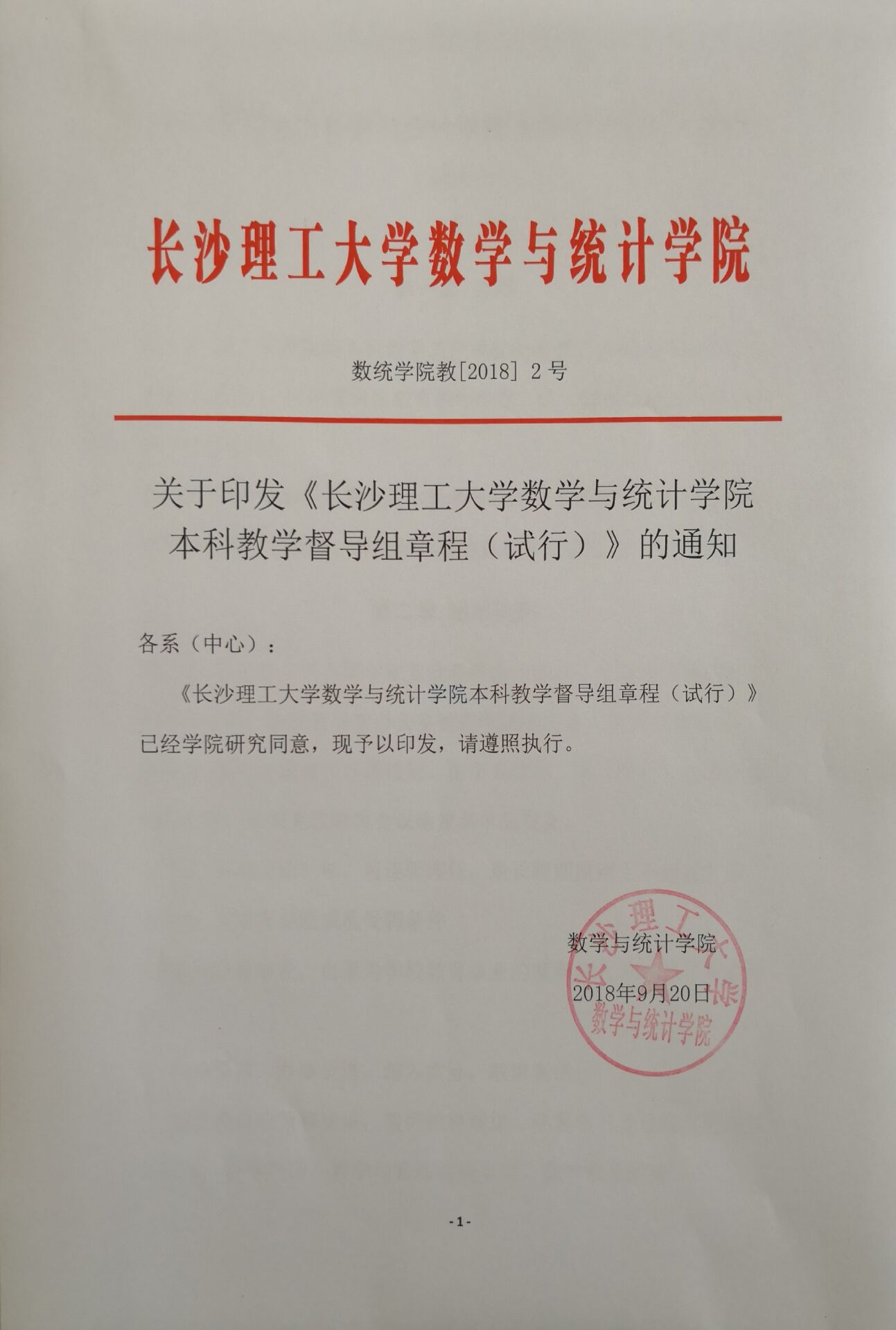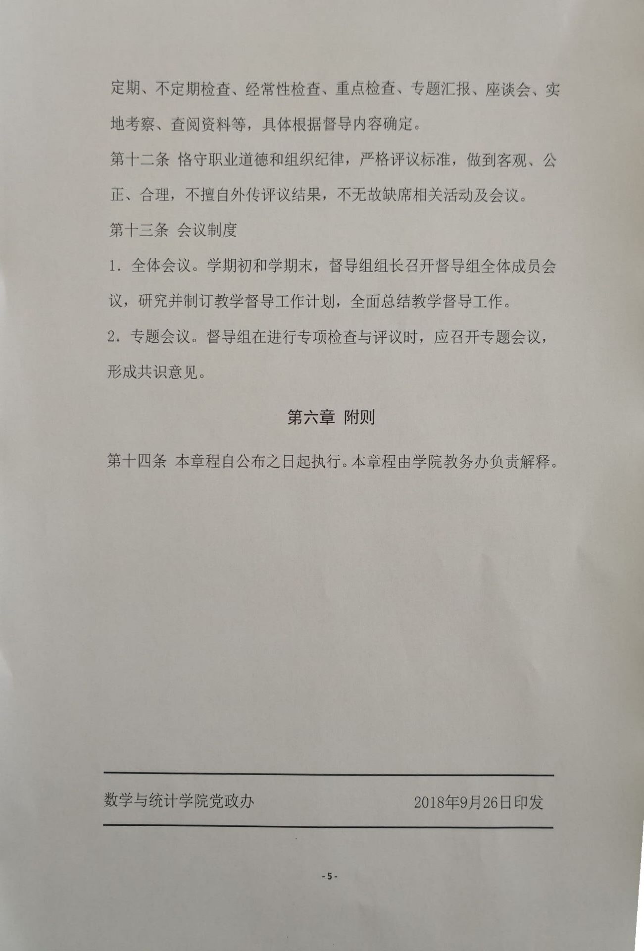 关于印发《LETOU体育平台数学与统计学院本科教学督导组章程(试行)》的通知