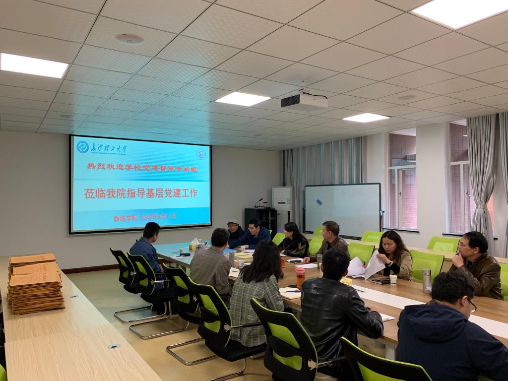 4月11日,根据校组织部通知要求,校党建督导专业组一行6人到学院进行基层党建“四项”检查工作,接到学校关于检查通知,院党委迅速把开展基层党建“四项”检查工作作为一项严肃的政治任务,由党委书记负总责,书记、副书记分别牵头负责教师支部、学生支部的自查和整改任务,各支部书记具体负责,充分认清基层党建“四项”检查的重大意义和现实紧迫性,增强了自查工作和整改工作的自觉性和主动性。坚持有问题抓整治、没问题抓预防,紧紧围绕通知中要求对照检查重点,深入细致查死角、防细节、排隐患,确保自查、整改不漏项,不走过场。院党委书记张宏伟在检查会上将自查情况向督导专家组进行汇报。整个检查过程中,院党委副书记马丽、党务干事梁珊、辅导员柳映堂等全程配合陪同检查。