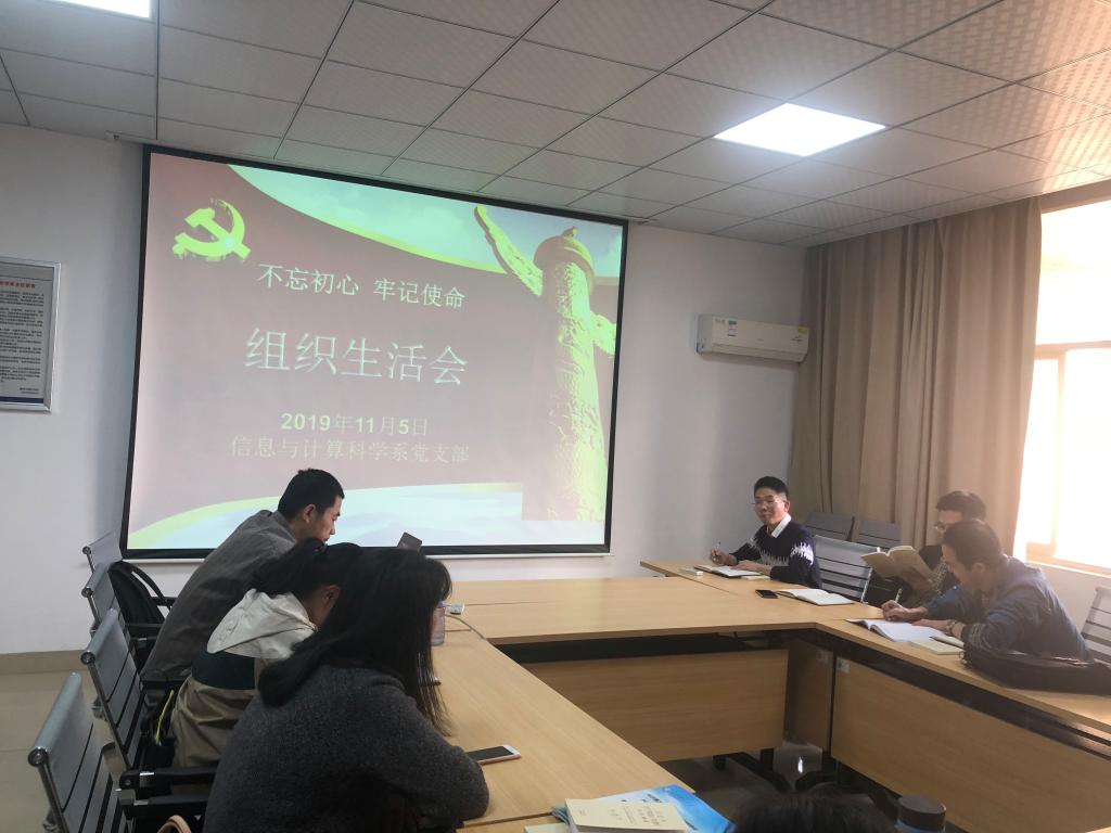 11月5日下午,信息与计算科学系党支部在党员活动室理科楼A502开展了“不忘初心、牢记使命”专题组织生活会,会议由支部书记李姣主持。