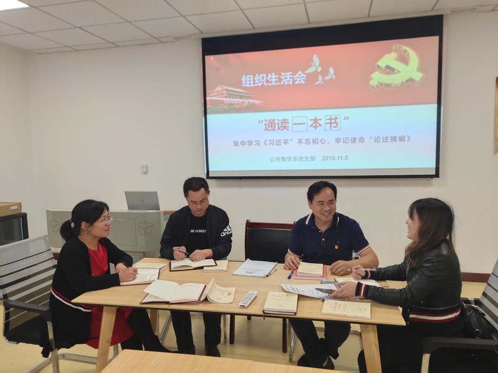 为深入查找基层党支部在思想作风、工作作风等方面存在的问题和不足,切实加强组织成员的作风建设、推进"不忘初心、牢记使命"主题教育。2019年11月6日,公数系党支部开展了以“牢记初心使命、推进自我革新”为主题的批评与自我批评组织生活会。