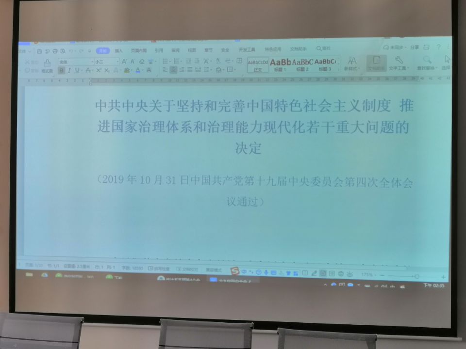 11月19日下午,统计系党员在理科楼A-504开展了学习党的十九届四中全会《决定》的学习活动,活动由支部书记陈志高组织。