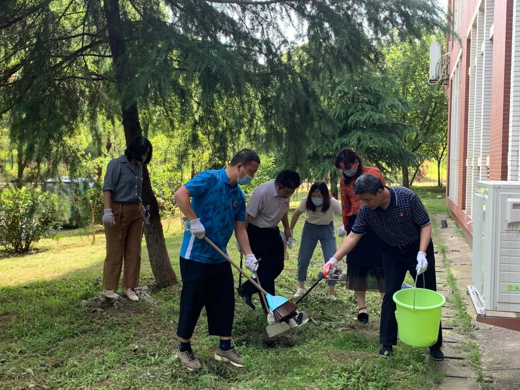 5月19日上午,学院行政党支部结合学校“清洁校园 除害防病 促进健康”活动的相关要求,组织全体党员开展校园环境卫生大扫除的主题党日活动。为师生创造一个安全、文明、干净、舒适的学习生活环境。党委书记张宏伟、副院长仝青山带头参与,以实际行动助力美丽校园建设。