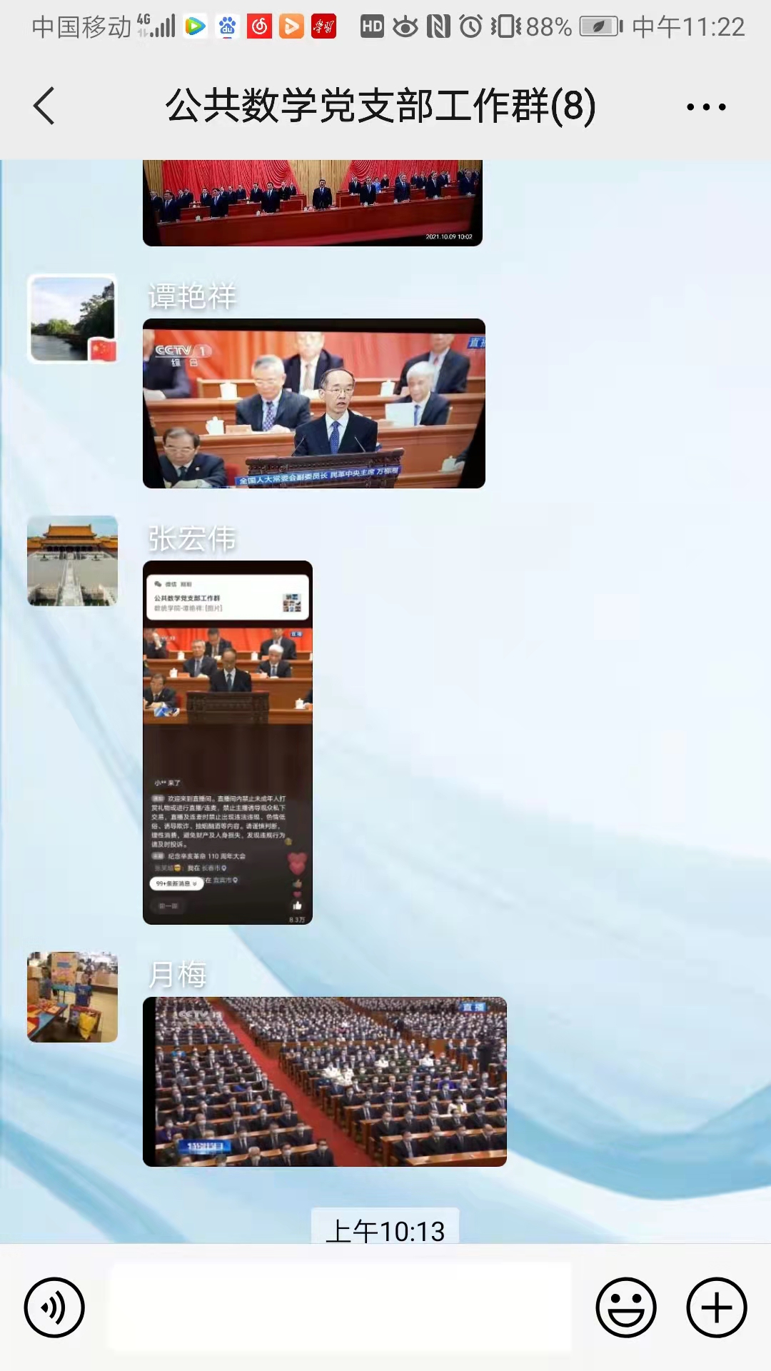 在收看收听过程中,大家都认真聆听习近平总书记的重要讲话内容,认为习近平总书记的重要讲话立意高远、思想深邃、鼓舞人心、催人奋进。纷纷表示要更加紧密地团结在以习近平同志为核心的党中央周围,高举中国特色社会主义伟大旗帜,继承和发扬辛亥革命精神,同心同德,携手并肩,向着中华民族伟大复兴的目标继续奋勇前进。要以习近平新时代中国特色社会主义思想为指导,学习和弘扬辛亥革命先驱为振兴中华而矢志不渝的崇高精神,在中国共产党的坚强领导下,志存高远、脚踏实地,共同为国家富强、民族复兴、人民幸福贡献力量。要始终牢记“为党育人、为国育才”的初心,团结一致、爱岗敬业,自觉把党的教育方针贯彻到教学科研、管理服务、成长成才全过程,为百强大学建设贡献力量。 (图/各支部提供 文/梁珊 审/邓崛峰)