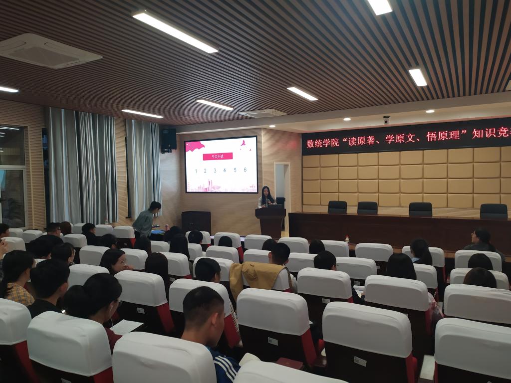 10月20日,数统学院理科楼A200举行读原著、学原文、悟原理知识竞赛活动。学生党建辅导员庄奕及全体学生党参与。