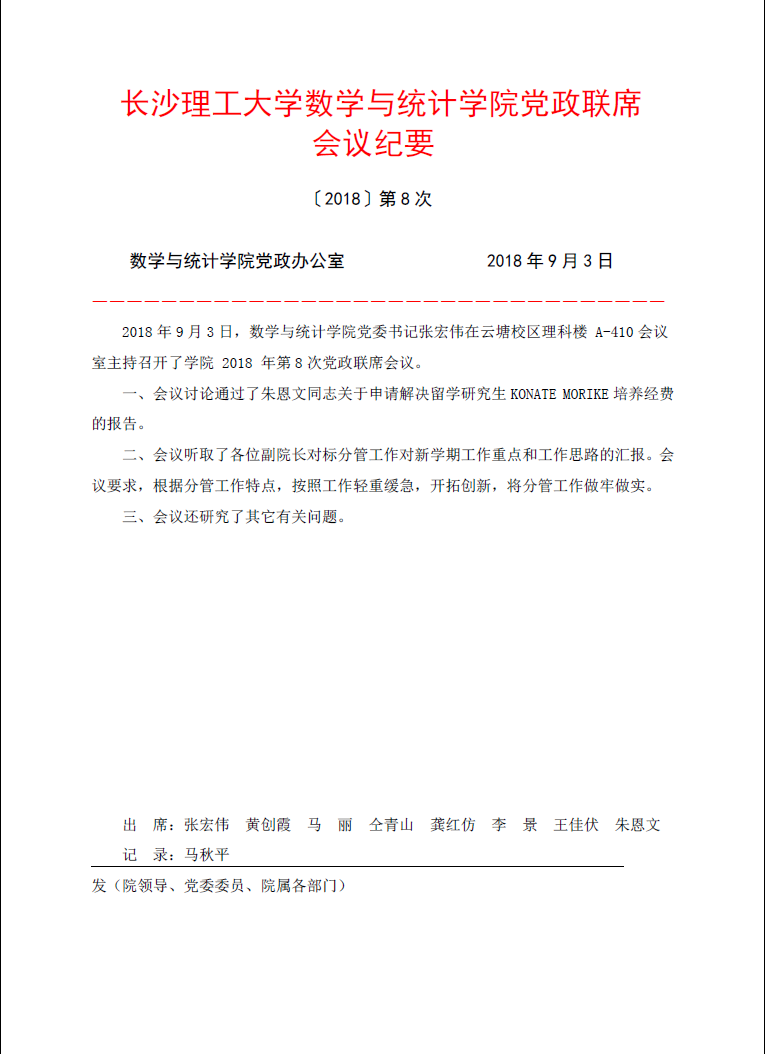 数学与统计学院党政联席会议纪要(2018年第8次)