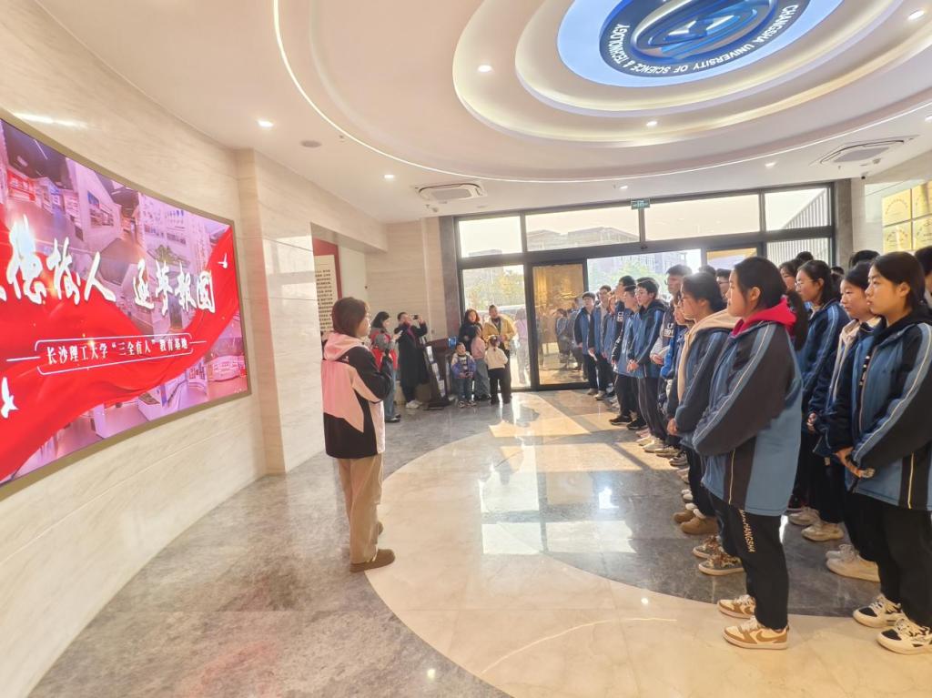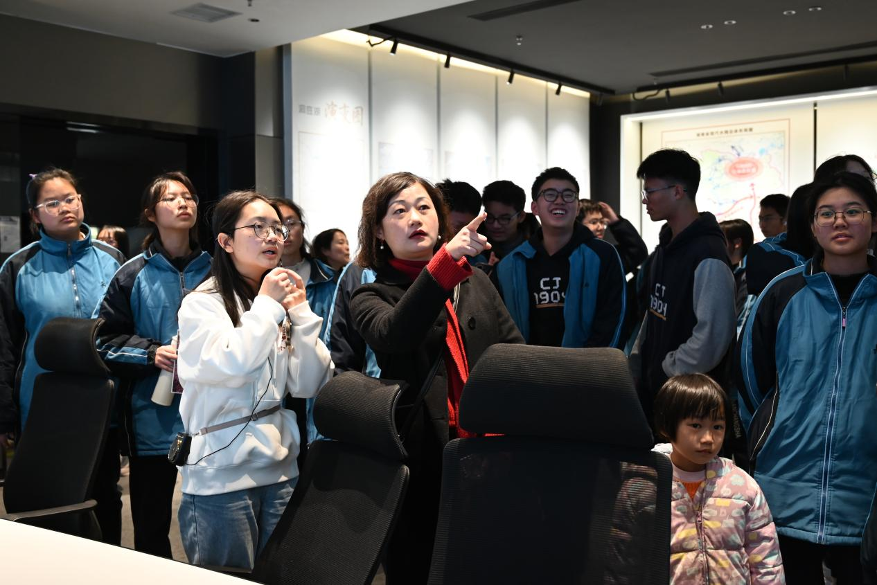 在水利与环境工程学院,长沙市长郡湘府中学高中部师生参观了洞庭湖水环境治理与生态修复湖南省重点实验室。在实验室展厅,志愿者讲解员曹丽娇介绍了该实验室的基本情况及发展历程并介绍高等级航道工程建设关键技术及应用等科研成果。以洞庭高性能流域数字模型、洞庭湖流域水安全要素精准预报技术为切入口,她向师生们展示了智慧水利在抗洪救灾、生态修复上所发挥的重要作用、学院在水利基础设施建设以及破解水利重大难题所作出的贡献。