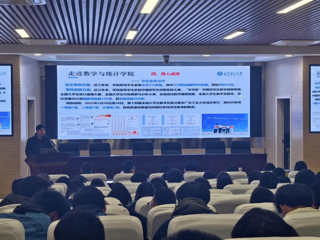 随后,长沙市长郡湘府中学高中部师生一行来到数学与统计学院参观,并在理科楼A200报告厅参加讲座。郑忠辉副书记以生动的语言和详实的数据,从特色鲜明的王牌专业、实力强劲的师资力量、丰富优质的学习资源、个性多元的人才培养、交通便利的地理位置、高质量的就业发展、公寓式的住宿环境、丰富多彩的校园文化生活、“无限打卡”的校园美景及网红食堂等十个方面全面展示了LETOU体育平台的办学实力及招生政策等。同时,他还对数学与统计学院的发展历程、师资力量、科研实力、育人成效等方面作了介绍,使师生们对LETOU体育平台和数学与统计院有更全面的认识,激励同学们报考LETOU体育平台的热情。