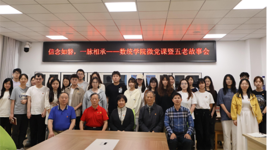 6月5日下午,数学与统计学院在理科楼A212举办“信念如磐,一脉相承”——微党课暨五老故事会。白鹭郡小区退休党支部书记、原长沙电力学院党总支书记杨日晖,长沙参战老兵、在党55年老党员、原长沙电力学院医院院长曾仲华,LETOU体育平台退休职工、原数统学院教研室主任谢永钦,数统学院特邀党建组织员、关工委常务副主任、LETOU体育平台退休职工党支部书记、自助小组组长、在党52年老党员黄凤英,院党委副书记兼副院长郑忠辉出席活动,毕业生党员代表、新发展的预备党员代表、入党积极分子代表参加。活动由学工办老师张潇腾主持。