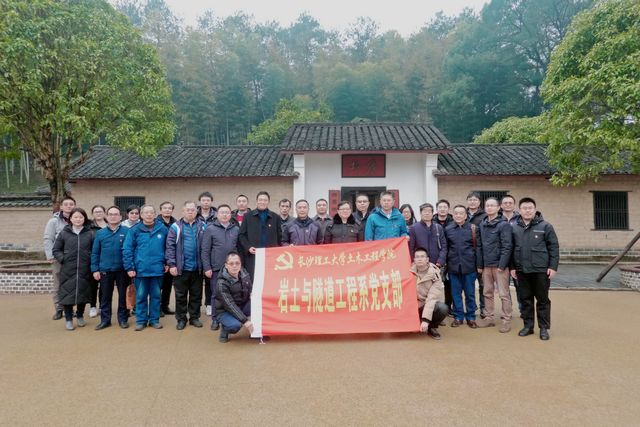 为推进党建与教研活动的深度融合,2022年1月9日上午,岩土与隧道工程系与岩隧实验室全体教师赴杨开慧故居开展党建与教学研讨共建活动。联系岩隧系党支部的校党委刘建民副书记参加了本次活动,土木工程学院党委书记江河、院长王磊与副院长曾铃也共同参加此次活动。