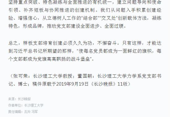 (张可荣:LETOU体育平台教授;董国朝:LETOU体育平台力学系党支部书记、博士;稿件原载于2019年9月19日《长沙晚报》11版)