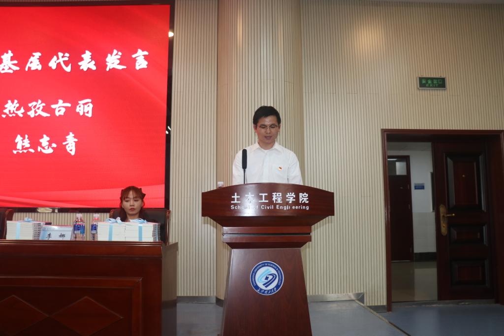 出征仪式上,土木工程学院院长王磊教授代表学院向学有所成,即将告别母校、踏上新征途的毕业生们送上了热烈的祝贺和衷心的祝福!王磊先是带领大家共同回顾学院四年来所取得的一系列辉煌成就,随后语重心长地提出三点寄语:一是希望同学们抱着终生学习的理念,练就过硬本领。二是希望同学们耐住寂寞、守住初心,以奋斗的姿态服务祖国、服务人民。三是希望同学们轻装上阵、磨炼意志,乘风破浪、久久为功。最后王磊表示土木学院永远是你们的家,期待大家常回家看看!