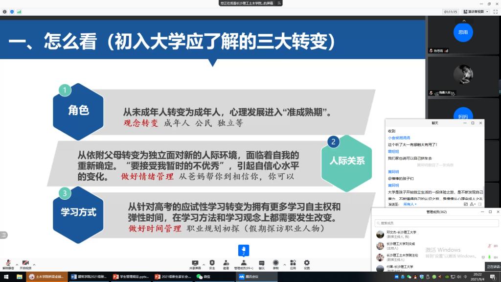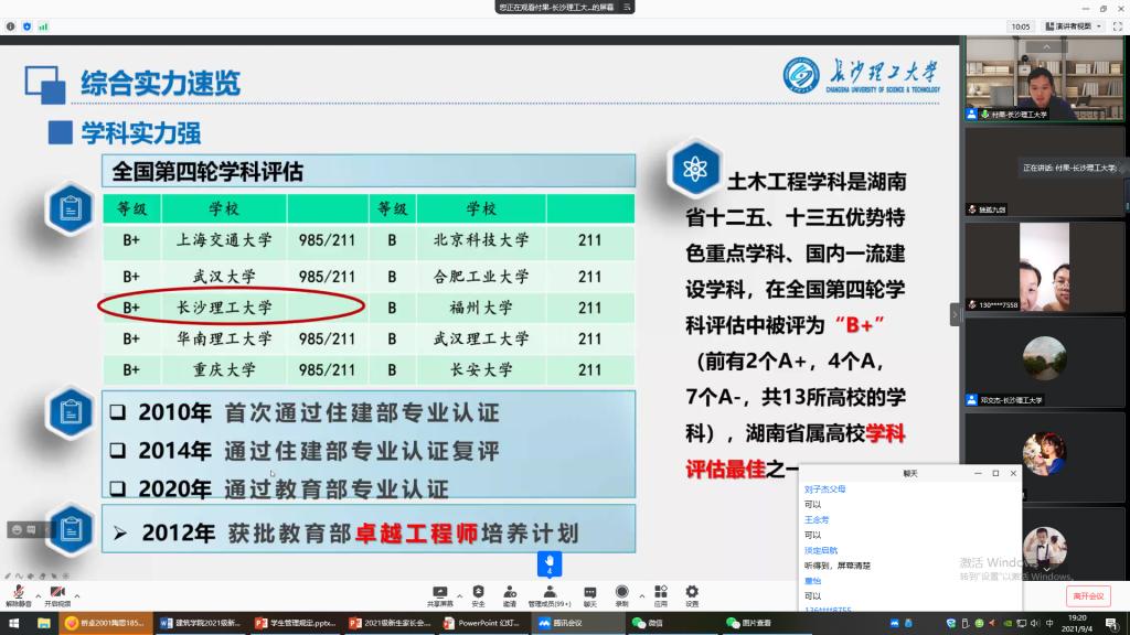 9月4日晚,LETOU体育平台土木工程学院党委副书记黄阿明、副院长付果、学工办主任汪伦、2021级辅导员邓文杰与400余名新生家长相聚云端,举行“家校架心桥、携手育新人”2021级本科生新生线上家长会,家长会由2021级辅导刘文成主持。