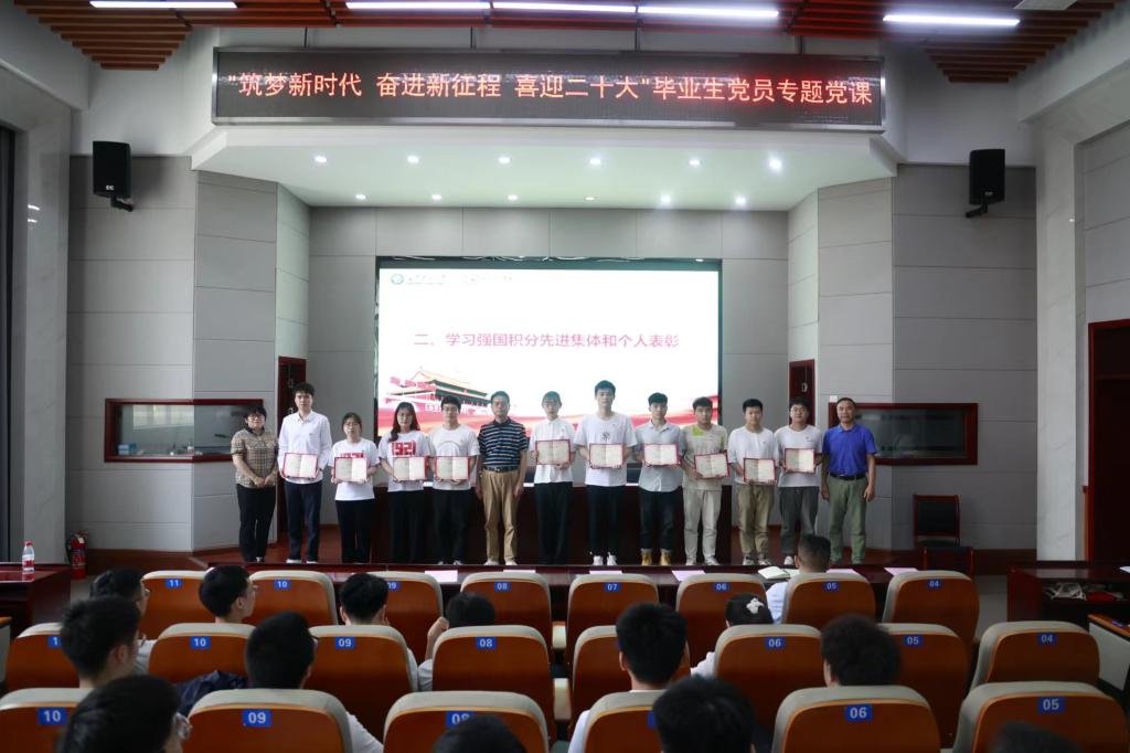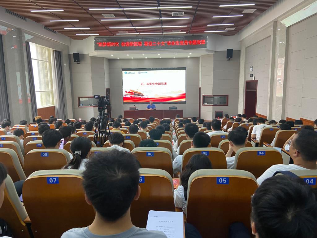 6月1日上午,土木工程学院在工科二号B301召开“逐梦新时代 奋进新征程 喜迎二十大 ”毕业生党员专题党课。学院党委书记江河、党委副书记黄阿明、专职组织员柳翼、学生党总支副书记刘文成、李小军及218名毕业生党员参加活动,活动由黄阿明主持。
