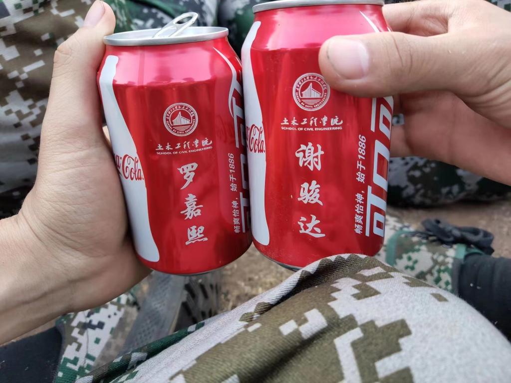 最后,在摆有“我爱土木”logo的见证下,院领导们为新生代表和教官送上了印有院徽和每一位新生名字的饮品,为炎炎烈日下艰苦训练的新生和教官带来清凉和关爱。