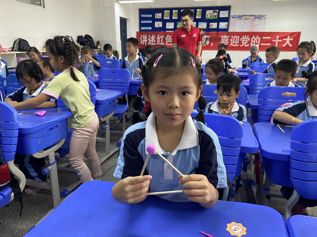 宣讲队成员彭翔宇,向小朋友们展示了事先用木条做好的桥梁,在宣讲团成员的带领下,小朋友们纷纷开始搭建自己心目中的“红桥”。“当我得知要去小学开展红色教育宣讲时,我第一时间便想到了让小朋友搭建‘红桥’这个环节,这样既不会因空洞的说教而使宣讲效果大打折扣,还将红色文化的种子以小朋友喜闻乐见的方式播撒在他们心中。”彭翔宇这样说道。