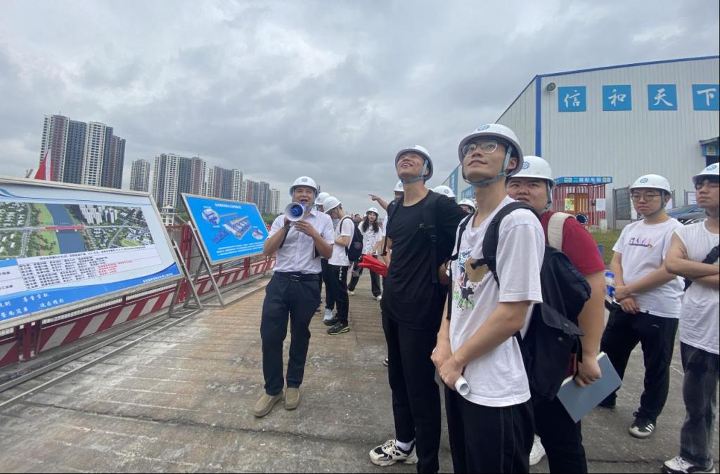 揭牌仪式前,在企业负责人的带领下师生党员参观了中建五局三公司金桂路跨浏阳河大桥项目和中建五局三公司的数字化展厅。全面了解了公司的发展历程、重点项目、企业文化、党建工作等基本情况。