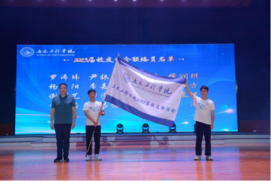 在《授旗仪式》环节,副院长张永杰为学院2023届校友联络员颁发聘书和授旗,期望大家将发挥桥梁纽带,迈向五湖四海新征程,常回母校看看。
