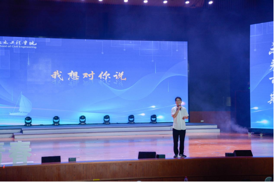 在《我想对你说》环节,院党委书记江河、院长王磊表达了最真挚的祝愿,勉励全体毕业生带着“逢山开路遇水搭桥”的开拓精神、带着“土累天下,木承苍穹”的土木精神,拨时代之浪潮,担时代之使命,扎根基层,建设祖国。让青春在党和人民最需要的地方绽放绚丽之花,让“长理人”这张名片在祖国的建设中更加鲜艳闪亮。随后,毕业生辅导员龙承运、董治佑和汪国栋饱含深情、带领同学们回忆大学生涯、表达万分不舍,毕业生代表用充满青春活力的口吻将四年来的点点滴滴分享给大家,表达了对学校和学院的感激之情,将晚会氛围推向顶点。