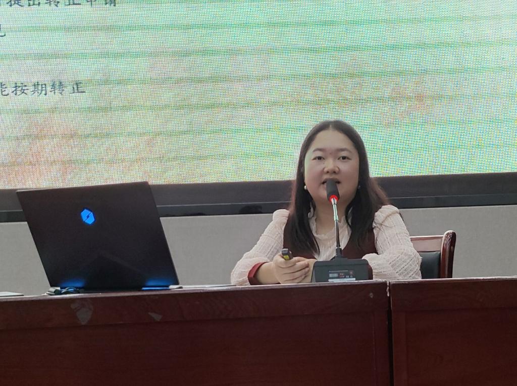 党课伊始,易芙蓉从接收新党员要有预备期、预备党员在预备期间需要注意的问题、预备党员转正程序和党员的教育管理四个方面出发,带领学员深刻领悟预备期的必要性与重要性。她指出,预备党员必须经过预备期的考察,才能成为正式党员,这是保证新党员质量的一项重要措施。随后,易芙蓉带领同学们重点学习了《中国共产党章程》中关于党员的教育管理部分。她还强调,预备党员与正式党员的重要区别之一正式党员享有表决权、选举权和被选举权,预备党员则没有,而在在行使党员的其他权利方面和履行党员义务方面,预备党员与正式党员是一样的。学习是党员的基本义务和权利,因此预备党员必须时刻加强政治理论学习、提高政治意识和政治站位。