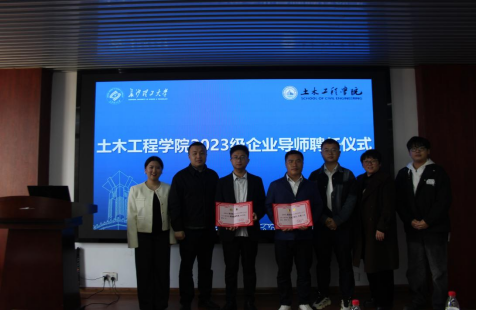 随后,黄阿明为企业导师颁发聘书,并合影留念。本次拟聘任的8名企业导师,来自中国交建、中国建筑、中国铁建等优质企业的资深工作者,他们将分别担任学院18个新生班级企业导师。大学四年,企业导师们将从思想引领、专业学习、社会实践、社会资助、就业指导等多角度多层次,为学生的成长成才提供指导。