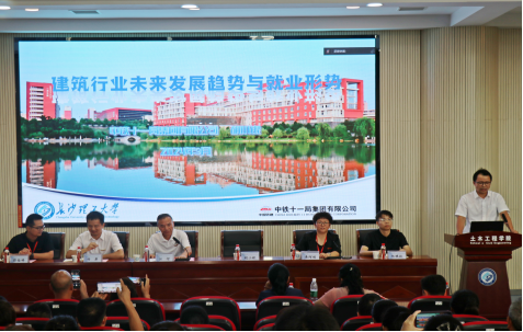 胡小银以“建筑行业未来发展趋势与就业形势”为题作行业发展报告。胡小银从“建筑行业发展现状、建筑行业发展趋势、正确的职业发展观”三个方面展开分享。胡小银指出,在大有可为的时代,勉励学生们厚德博学,提升自身素质,牢记初心使命,走立足基层成才之路。
