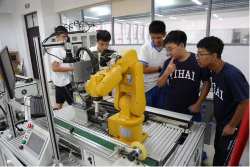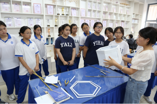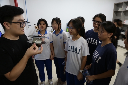 在老师和志愿者的引导和讲解下下,怡海中学的师生们首先参观了科创中心的3D打印机、结构设计训练室、先进成图训练室和电气学院的机器人实验室等地,实地感悟了LETOU官网在科学研究、技术创新、学科竞赛等方面的成果,让中学生们对科技创新有了更深刻的认识,激发了他们热爱科学、探索未知的兴趣。随后,师生们来到“三全育人”教育基地。师生们在讲解员的带领下参观了教育基地,同学们积极参与互动体验,感受大学校园文化的魅力。