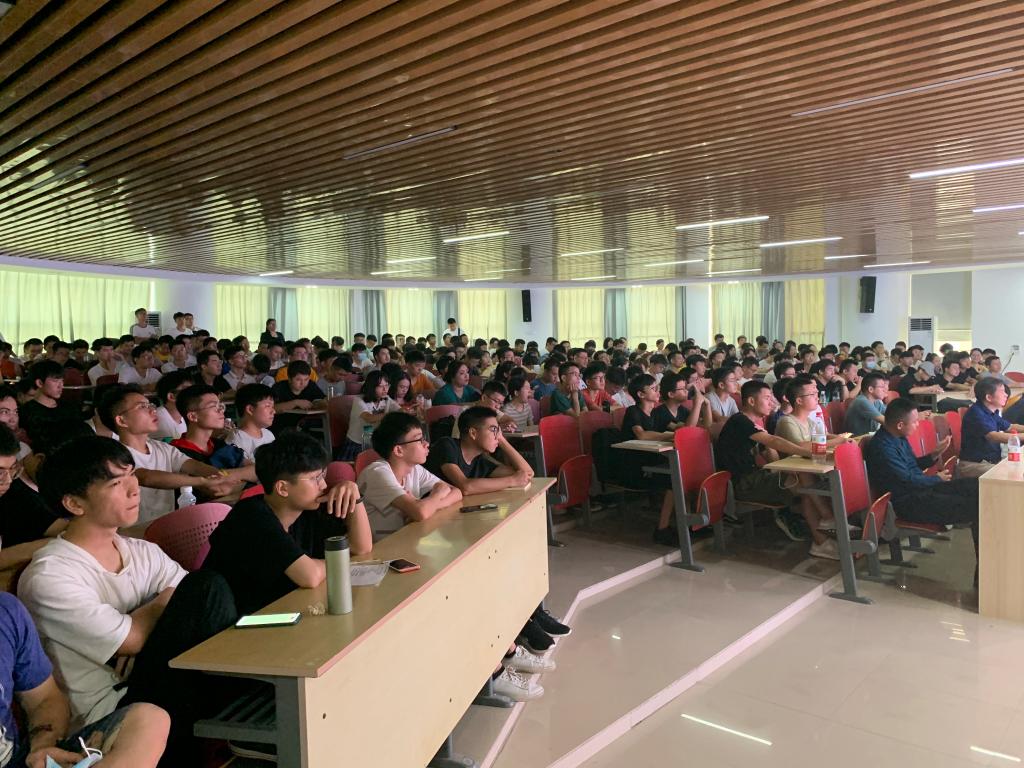 随后,王桂尧为同学们分析了考研形势,提醒大家要明确自身定位,合理选择考研目标院校,并详细解读了我院最新的研究生校内优秀生源奖励方案。
