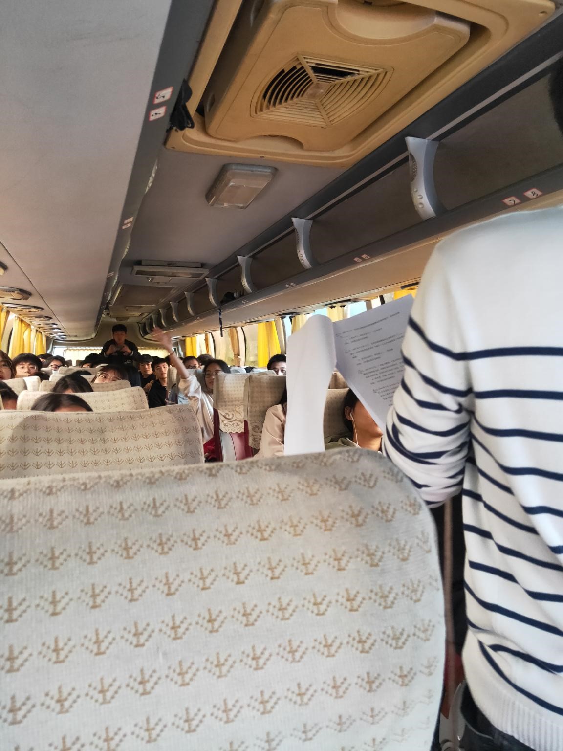 客车上的激烈抢答。前往故里途中,党支部副书记游逸帆主持进行学党史竞赛,竞赛采取积分抢答制,以举手先后和回答正确与否为计分标准,共分为新民主主义革命、社会主义革命和建设、改革开放与新时代四个专题,全程气氛热烈,同学们纷纷抢答,最终夏嘉徽同志以13积分获胜第一名。