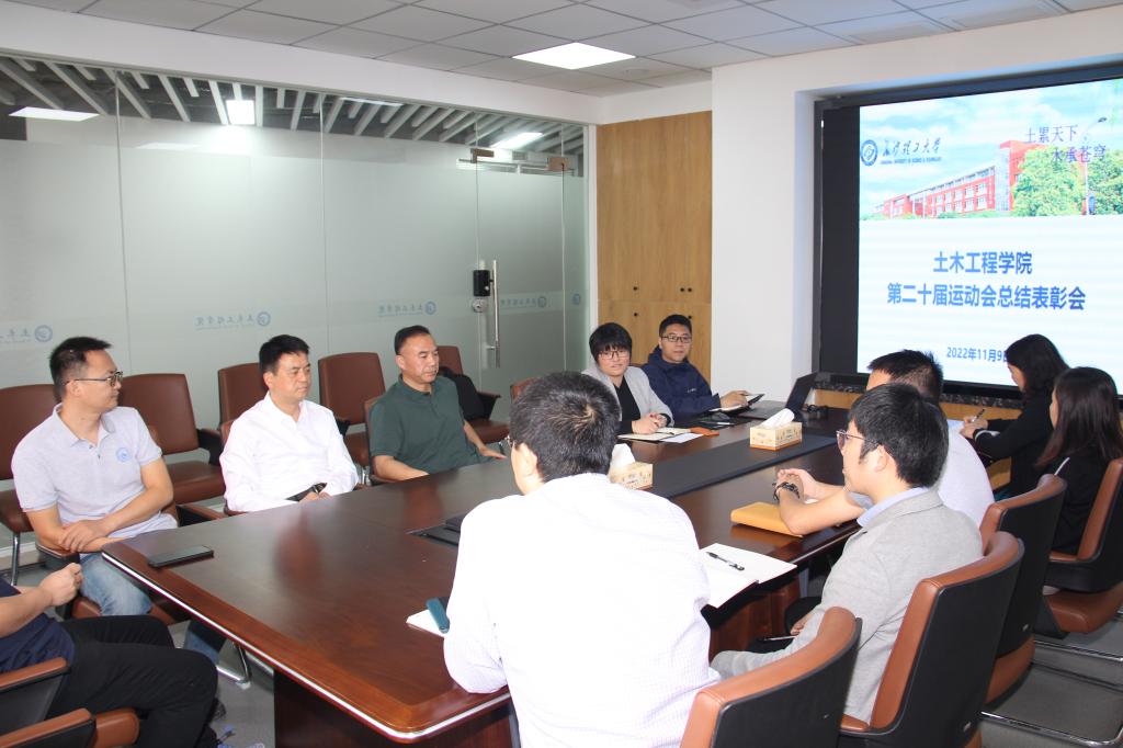 LETOU体育平台第二十届运动会圆满落下帷幕,土木学院教工代表队获团体总分第一的好成绩,同时获评优秀组织奖,取得运动成绩和精神文明双丰收。11月9日上午,土木学院召开运动会总结表彰会,学院党委书记江河、工会主席张永杰、运动会项目负责人、工会小组长、运动员代表参加了会议,会议由工会主席张永杰主持。