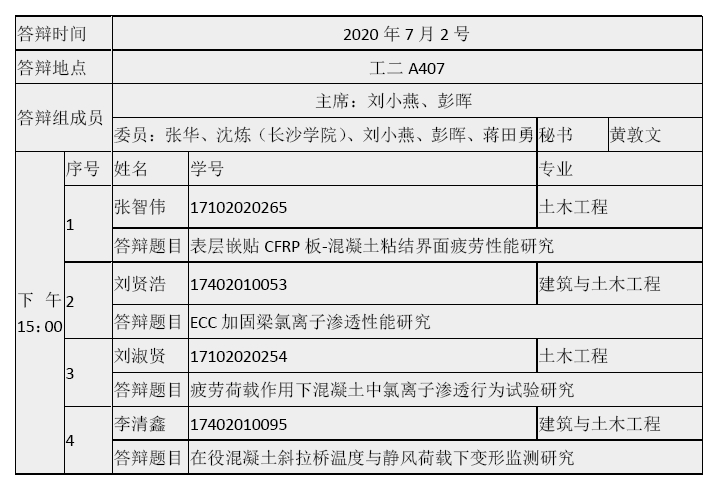 土木工程学院2020年上半年硕士学位论文答辩公示(第二批)