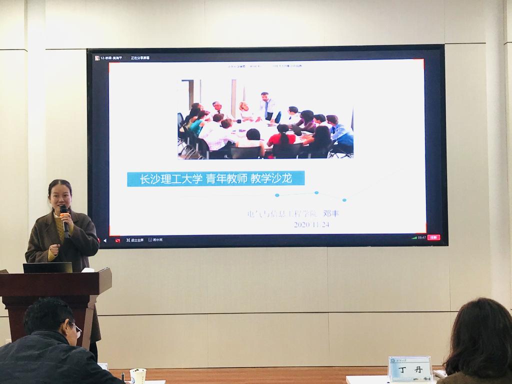 省课堂教学竞赛一等奖获得者电气学院青年教师邓丰副教授向大家分享教学心得。她从参加教学竞赛的初衷与体会、教学竞赛的介绍、成长收获几个方面,毫无保留地分享了她的经历和经验,推心置腹地分析了教学与科研之间教学促进科研、科研反哺教学的深刻关系,解答了青年教师发展路上的心中困惑。邓丰老师在参加省赛的过程中总结出竞赛是立足课堂而高于课堂、全面而独立的课件课程设计、具备政治高度和学术高度、细节决定成败的“秀”、“独”、“高”、“细”几个方面的比拼,非常生动精彩,令青年教师们受益匪浅。