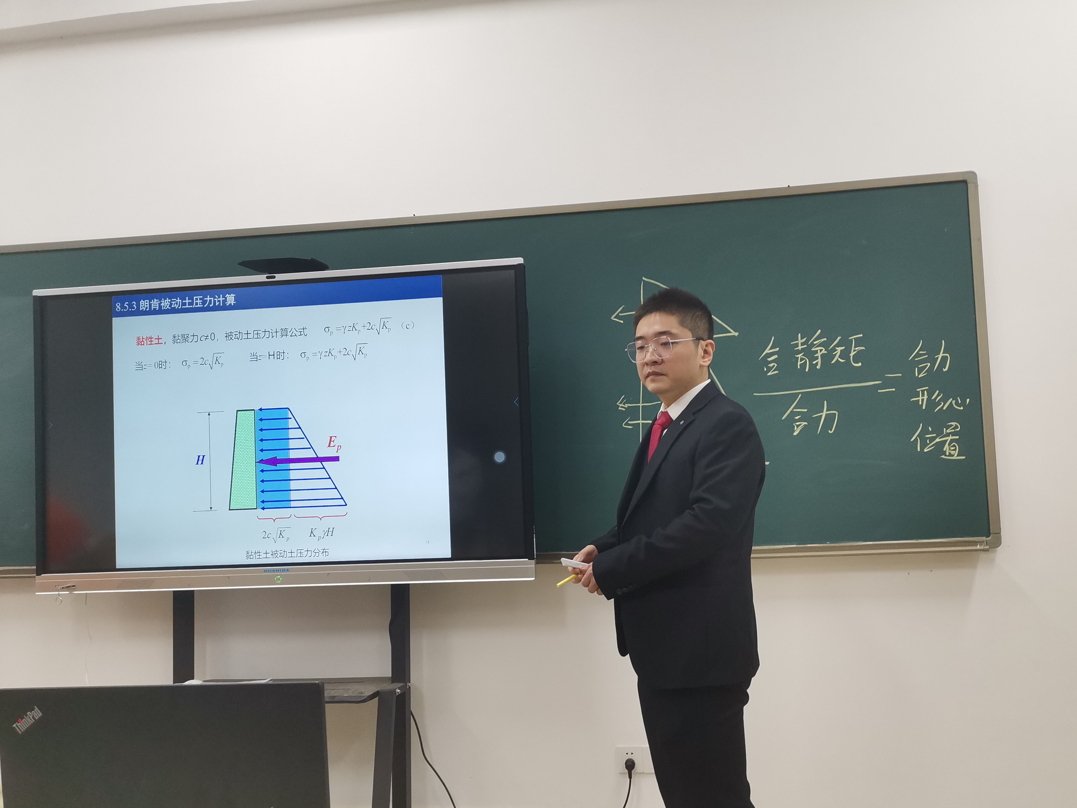 本次会议的主题为《土力学》课程教学体系建设、教学方法与一线教学经验分享等,同时探讨《土力学》实践教学与岩土工程课程体系对创新人才培养的地位和作用等。土木工程学院岩土与隧道工程系组织相关任课教师参加了本次线上会议,并参与相关讨论;此外,周德泉教授还参加了土力学教学专业委员会会议,肖南与郭一鹏两位青年教师还参加了土力学讲课交流会,分别进行了题为“朗肯土压力理论”、“朗肯主动土压力”的讲课交流。参会老师通过与专家的交流,分享了我院在《土力学》教学方面的经验,同时也聆听了其他高校在土力学教学方面的宝贵经验,宣传我院《土力学》教学特色的同时促进了我院《土力学》课程建设和青年教师教学水平的提高。